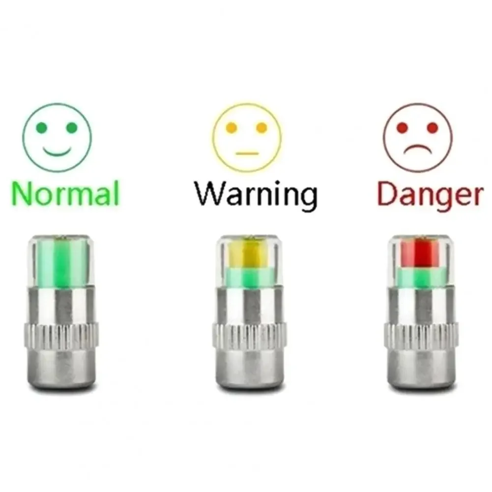 Bouchon Valve Pneu > 4 pièces, 2.4 Bar Pression Alarme Chapeau de valve applicable pour les voitures et Motos.